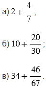Чтобы найти сумму двух дробей с одинаковыми знаменателями, нужно сложить их числители, а знаменатель оставить прежним.