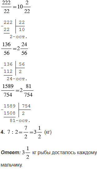 4. Два мальчика поймали 7 кг рыбы и разделили улов поровну. Сколько килограммов рыбы досталось каждому мальчику?
