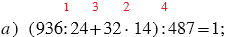 Красные числа, стоящие сверху над действиями, показывают в каком порядке нужно выполнять действия.