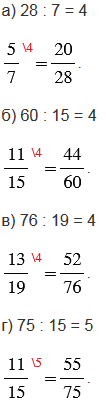 При приведении дробей к новому знаменателю используем основное свойство дроби: если числитель и знаменатель дроби умножить на одно и то же натуральное число, то получится дробь, равная данной.