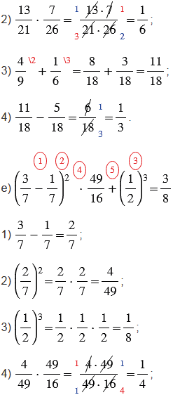 Красные числа, стоящие сверху над действиями в кружочках, показывают в каком порядке нужно выполнять действия.