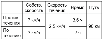 1) 90 : 3,6 = 900 : 36 = 25 (км/ч) - скорость против течения.