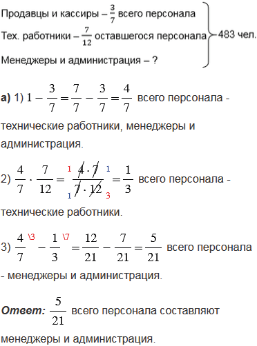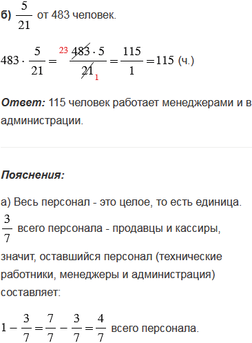 б) Сколько человек работает менеджерами и в администрации, если всего в торговом центре работает 483 человека?