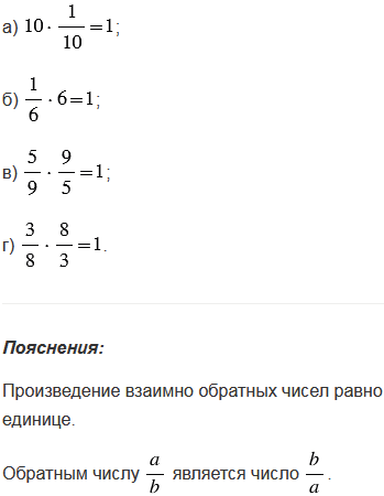 Вспомните, умножение обыкновенных дробей, взаимно обратные числа.