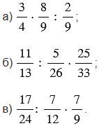 При выполнении умножения дробей, чтобы вычисления были проще, не надо перемножать сразу, лучше сделать это после сокращения. Сократить дробь - значит, разделить ее числитель и знаменатель на одно и то же число (наибольший общий делитель).