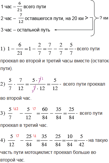 оставшегося пути, а в третий час - остальной путь, причём во второй час он проехал на 40 км больше, чем в третий. Найдите расстояние, которое проехал мотоциклист за эти три часа