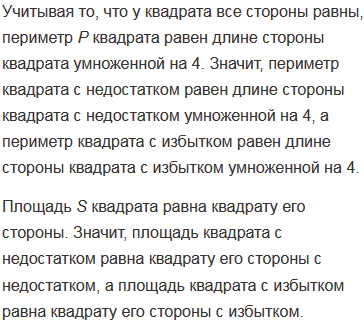 Сторона квадрат см. Укажите приближенные значения с недостатком и с избытком для периметра и для площади этого квадрата, если: