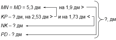 3) 5,3 - 1,9 = 3,4 (дм) - сторона РD.