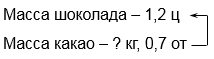 Шоколад содержит 0,7 какао. Сколько килограммов какао потребуется для производства 1,2 ц такого шоколада?