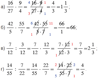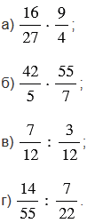 Произведением двух дробей является дробь, числитель которой равен произведению числителей, а знаменатель - произведению знаменателей. Чтобы вычисления были проще, не нужно сразу перемножать, лучше сначала выполнить сокращение.