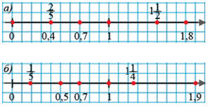 Отметьте на координатной прямой с единичным отрезком в 10 клеток точки, координаты которых равны: