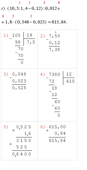 г) (10,5 : 1,4 - 0,12) : 0,012 +