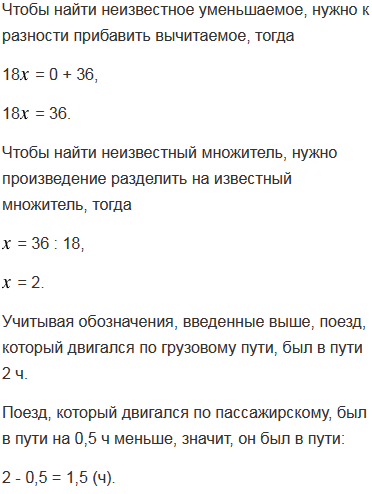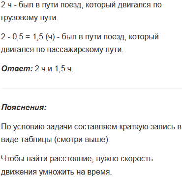 От станции отошёл поезд, который двигался по грузовому пути со скоростью 54 км/ч. Через полчаса вслед за ним по пассажирскому пути со скоростью 72 км/ч вышел второй поезд. Сколько времени каждый поезд был в пути, если известно, что на следующую станцию они прибыли одновременно?