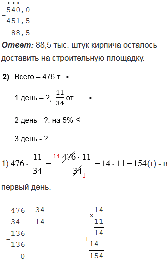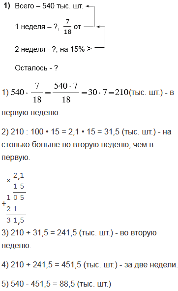 1) Строительная компания закупила для строительства спортивного комплекса 540 тыс. штук кирпича. В первую неделю на строительную площадку было доставлено