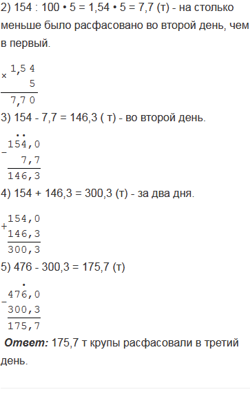 2) Фасовочные аппараты за три дня расфасовали 476 т крупы. В первый день было расфасовано