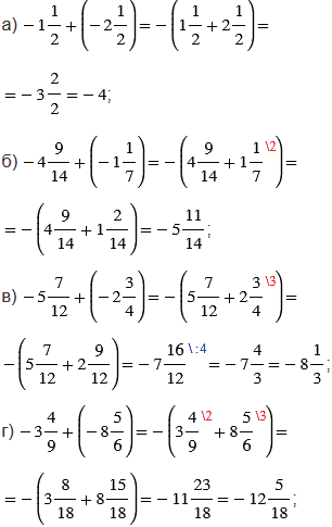 1) сложить их модули; 2) поставить перед полученным числом знак " - ".
