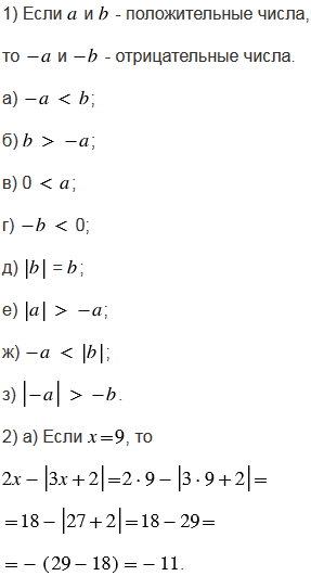 - отрицательные числа. Также помним то, что любое положительное число больше любого отрицательного числа и любое положительное число больше нуля, а любое отрицательное число меньше нуля. Модуль числа принимает только неотрицательные значения.