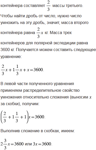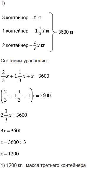1) Масса трех контейнеров для полярной экспедиции равна 3600 кг. Масса первого контейнера в