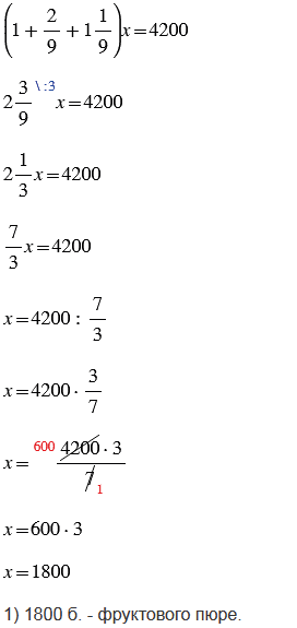 2) На консервном заводе за смену изготавливали 4200 банок трех видов пюре для малышей. Банки мясного пюре составляли