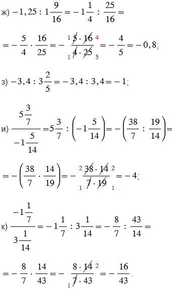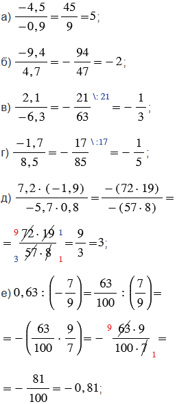 1) чтобы найти частное двух чисел с разными знаками, надо разделить модуль делимого на модуль делителя и поставить перед полученным числом знак "-";
