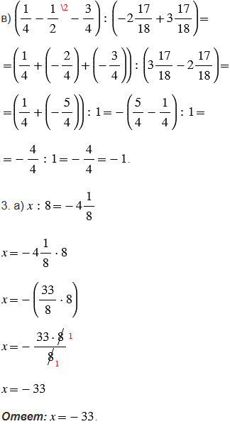 Во втором задании порядок выполнения действий определяем по следующему правилу: если в выражении есть скобки (скобки, которые определяют отрицательное число не учитываем), то сначала выполняют действия в скобках, а затем за скобками, при этом как в скобках, так и за скобками, сначала выполняют действия второй ступени (умножение и деление) по порядку слева направо, а потом действия первой ступени (сложение и вычитание), также по прядку слева направо.