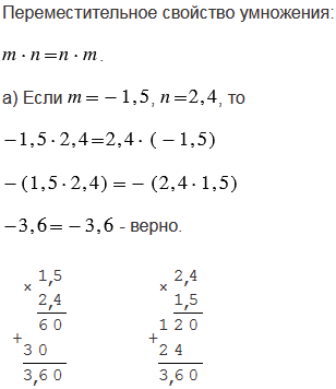 запишите переместительное свойство умножения. Подставьте значения букв: