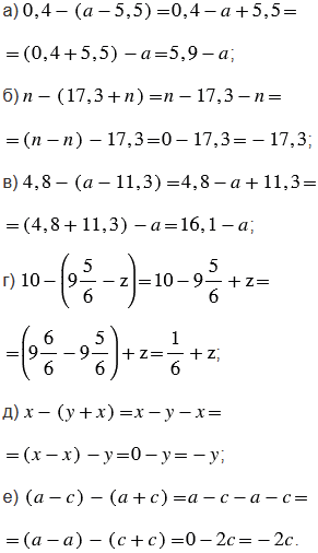 Сначала в каждом выражении раскрываем скобки, при этом помним: