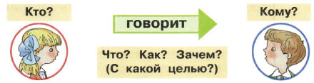 Рассмотрите рисунок и схему. Назовите собеседников и вопросы, которые помогают им в общении.