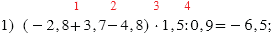 Красные числа, стоящие сверху над действиями, показывают в каком порядке нужно выполнять действия.