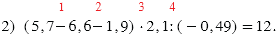 2) (5,7 - 6,6 - 1,9) • 2,1 : (-0,49).