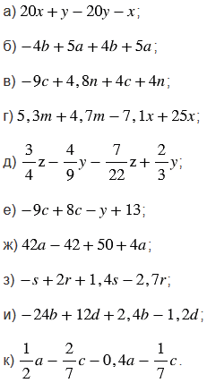 У нас в выражениях подобные слагаемые выделены одинаковым цветом, но можно подобные слагаемые подчеркивать одинаковым количеством черточек.