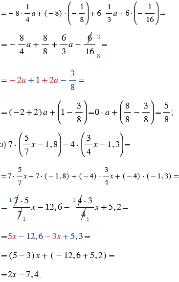У нас в выражениях подобные слагаемые выделены одинаковым цветом, но можно подобные слагаемые подчеркивать одинаковым количеством черточек.