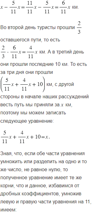 оставшегося пути, а в третий день - последние 10 км. Найдите длину туристического маршрута.
