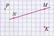а) Проведите прямую NМ, отметьте точку K (рис. 6.6). Используя чертежный треугольник, проведите через эту точку перпендикулярную прямую к прямой NМ. Сколько прямых, перпендикулярных отрезку NМ, можно провести через точку K?