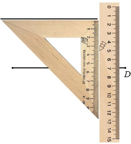 С помощью чертежного треугольника проверяем будет ли сторона АВ перпендикулярна АD. Для этого прикладываем чертежный треугольник к стороне АD одной из его сторон, образующих прямой угол, при этом вершину прямого угла чертежного треугольника прикладываем к точке А.