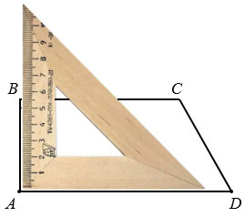 Видим, что сторона АВ расположена вдоль другой стороны чертежного треугольника, образующей прямой угол. Значит, сторона АВ перпендикулярна АD, то есть сторона АВ
