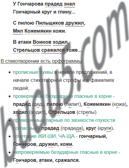 С большой буквы в стихотворении пишутся фамилии (Гончаров, Пильщиков, Кожемякин, Воинов, стрельцов), а также первое слово каждой строки стихотворения.