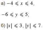 На координатной плоскости постройте прямоугольник, у которого абсциссы и ординаты точек удовлетворяют условиям: