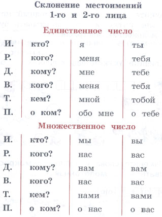 2. Похоже ли склонение местоимений 1-го и 2-го лица?