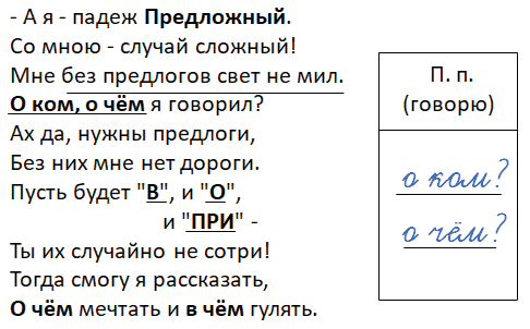 - А я - падеж Предложный.