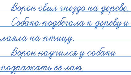 Ворон свил гнездо на дереве. Собака Бимка часто подбегала к дереву и лаяла на птицу. Ворон молча смотрел на собаку, а потом сам стал подражать её лаю. Увидит издали Бимку и начнёт лаять.