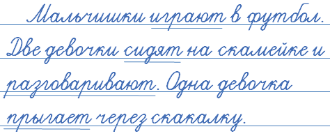 Слова для выбора: играют в футбол, бегает, прыгает, качается, разговаривают.