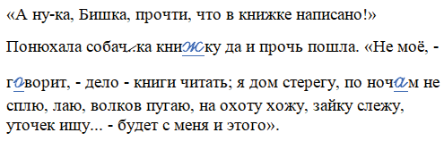Понюхала собач..ка кни..ку да и прочь пошла. «Не моё, — г..ворит, — дело — книги читать; я дом стерегу, по ноч..м не сплю, лаю, волков пугаю, на охоту хожу, зайку слежу, уточек ищу... - будет с меня и этого».