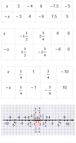 Заполните таблицу противоположных чисел. Отметьте эти числа на координатной прямой.