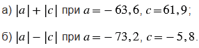Чтобы найти значение буквенного выражения при заданном значении переменных, нужно в это выражение вместо букв подставить числа, им соответствующие, и выполнить вычисления. При выполнении вычислений учитываем то, что модуль числа принимает только неотрицательные значения, а чтобы сложить или вычесть десятичные дроби, нужно записать числа столбиком так, чтобы запятая стояла под запятой. Затем выполнить действие не обращая внимание на запятую, а в ответе поставить запятую под запятой.
