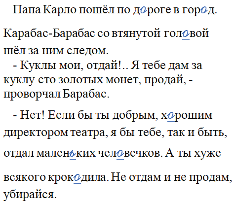 Папа Карло пошёл по д..роге в гор..д. Карабас-Барабас со втянутой гол..вой шёл за ним следом.