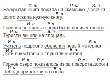 • Подчеркните в предложениях главные члены. Укажите падеж имён существительных.