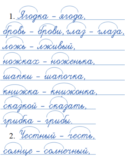 Запишите найденные слова по группам вместе с однокоренными проверочными словами. Корни выделите.