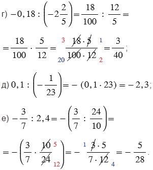 Чтобы найти частное двух чисел с разными знаками, надо разделить модуль делимого на модуль делителя и поставить перед полученным числом знак "-".