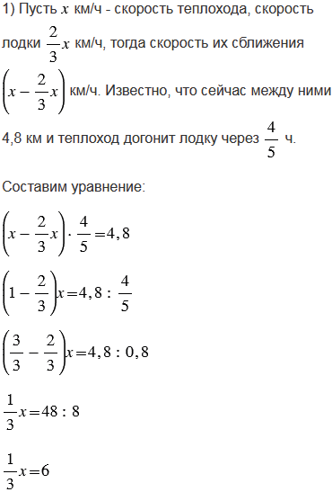 1) Сейчас между теплоходом и лодкой 4,8 км. Скорость лодки составляет